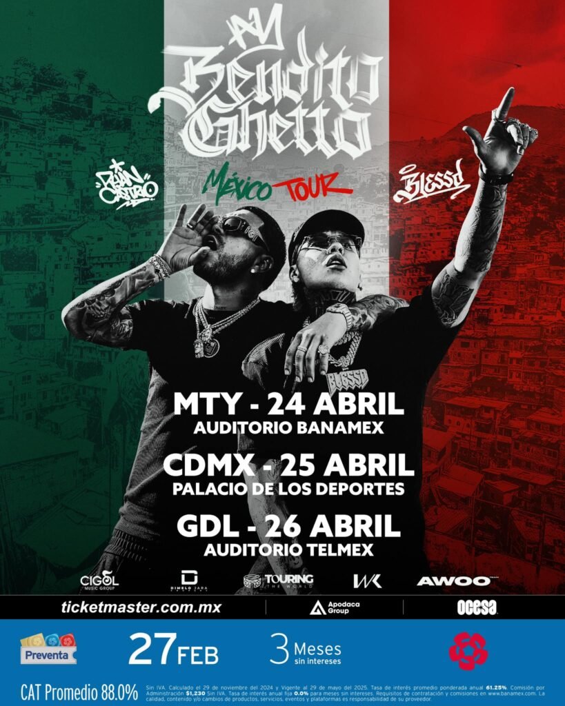 El Bendito Ghetto México Tour no es solo un show, es una declaración de orgullo latino, de barrio, de calle y de talento que ha cruzado fronteras. CDMX será testigo este viernes de por qué Ryan Castro y Blessd son dos de los nombres más grandes del reguetón actual.